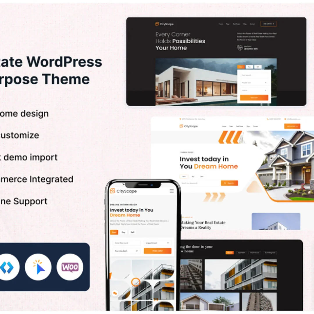 CityScape is the ultimate solution for real estate professionals, agencies, and property managers. Designed with elegance and functionality in mind, this modern WordPress theme is packed with powerful features to showcase properties, attract buyers, and close deals.